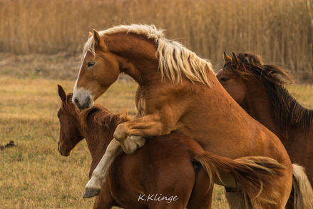 Nach der etwas seltsamen Begegnung genieße ich die Aland-Ruhe, der Wind hat inzwischen für etwas besseres Wetter gesorgt & der Himmel ist nicht mehr grau, sondern eher grau-blau-fluffig. Vorm Aland hat eine Pferdeherde ihre Koppel & wohl gerade einen guten Moment, denn sie sind ausgesprochen aktiv & es macht Spaß, ihnen dabei zuzusehen. Es sieht fast wie natürlich aus - wäre der Elektro-Zaun nicht. An denjenigen, dem die Pferde gehören - schöne Tiere! Anmerkung: Es folgen ausschließlich Pferde-Bilder.